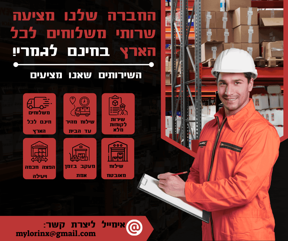 הצוות שלנו זמין תמיד לשאלות ולתמיכה, ומספק מידע ברור ועדכונים שוטפים לאורך כל תהליך המשלוח.
